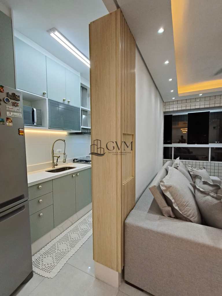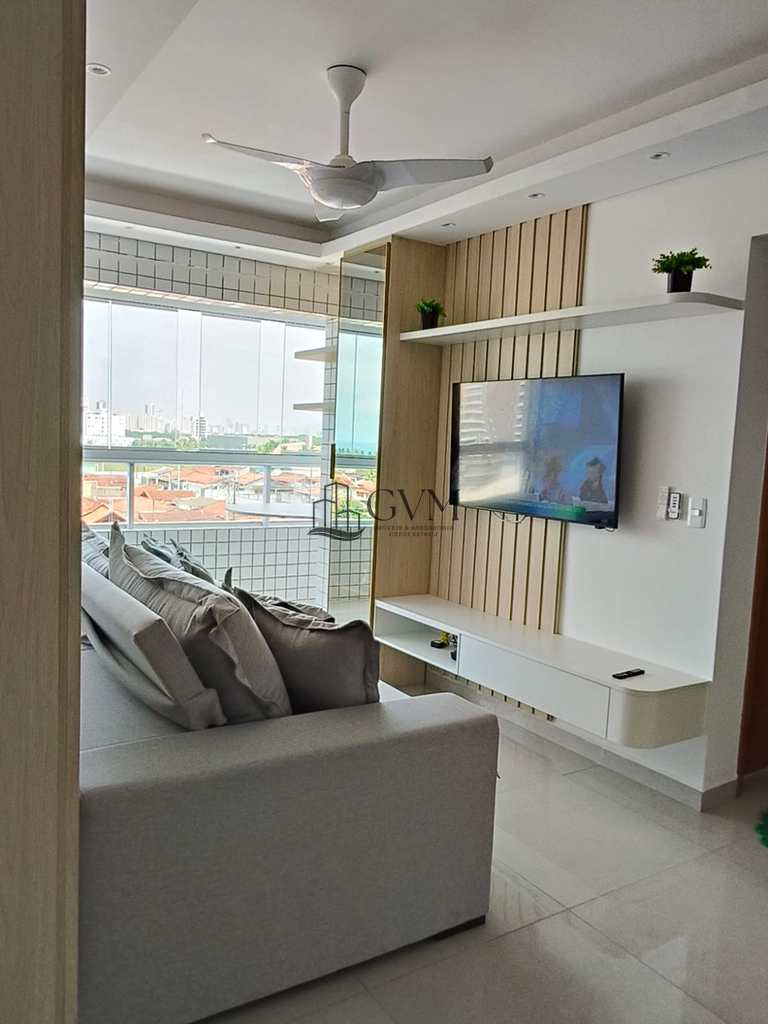 OPORTUNIDADE NO BAIRRO VILA MIRIM, EM PRAIA GRANDE !!! Apartamento completo VISTA MAR, mobiliado e decorado, com dois dormitórios, dois banheiros, sacada com envidraçamento, sala cozinha e vaga de garagem. O imóvel proporciona uma experiência completa com lazer: piscina adulto e infantil, salão de festas, academia e churrasqueira. Uma ótima opção para quem gosta de se reunir com familiares e amigos. O edifício está em uma excelente localização, com segurança e tranquilidade garantidas!! Não perca esta oportunidade!!!