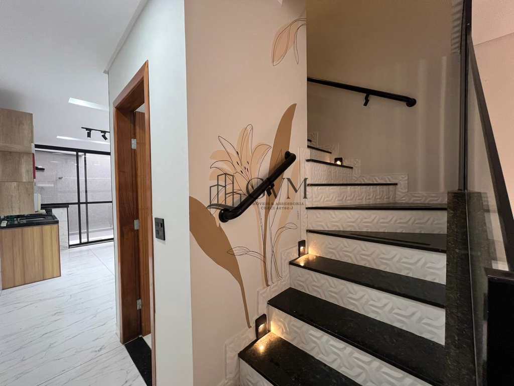 OPORTUNIDADE NO CAIÇARA, EM PRAIA GRANDE !!! Casa alto padrão, pronta para morar, com 2 quartos suítes, uma com hidro e sacada, sala, cozinha com planejados, banheiro, área de serviço coberta com churrasqueira e uma vaga de garagem. O imóvel conta com portão automático e monitoramento por câmera e acabamento super moderno. O condomínio fica localizado em um ótimo bairro para quem preza por segurança e acessibilidade. Não perca esta oportunidade!!!